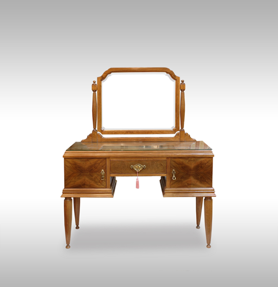 Material: Madera de nogal y palma de nogal Tema: Tocador Escuela: Art Decó Epoca: Siglo XX Estado de Conservación: Perfecto Más Información