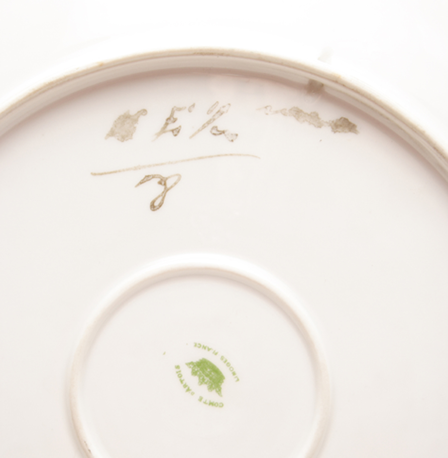 Material: Porcelana pintada y esmaltada Tema: Detalle de las marcas Escuela: Limoges- Francia Epoca: S. XIX Estado de Conservación: Perfecto Más Información